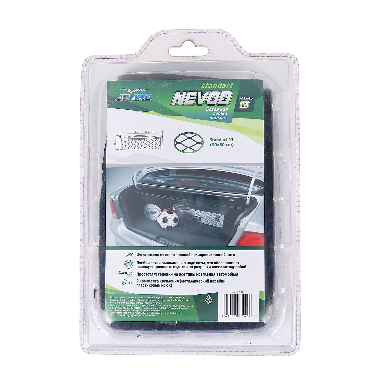 Сетка крепления груза в багажник 30 х 90 см карман Азард