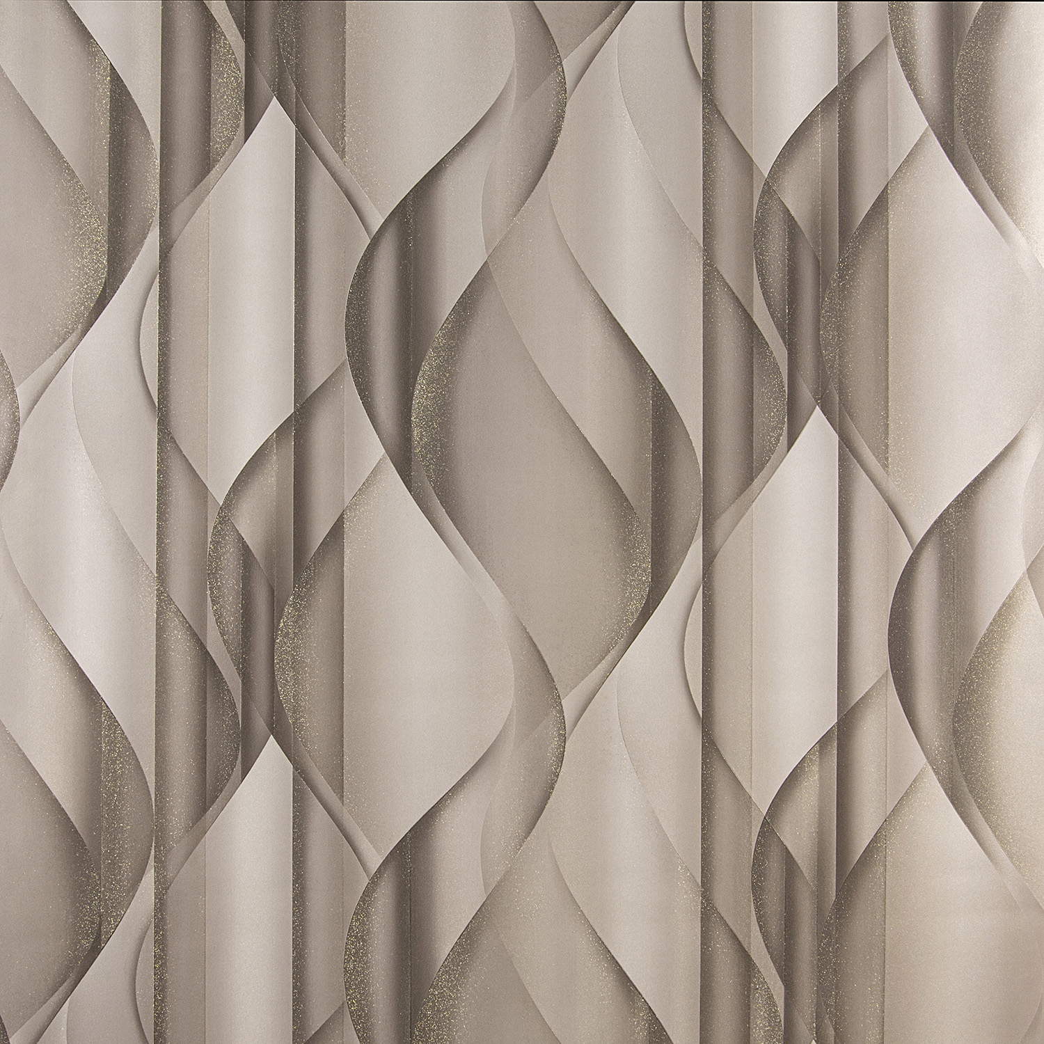 Фон коллекции имитирует текстуру необработанной штукатурки, а перламутровое напыление с неглубоким тиснением подчеркивает ее. Фон выполнен в спокойных тонах, он гармонично дополняет и усиливает впечатление от волнообразной абстракции мотива.