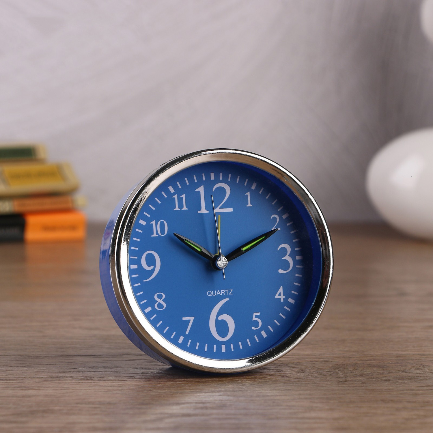 Будильник круг на подставке, крупные цифры 3,6,9,12, цвет циферблат, стрелки микс d=10см 720750
