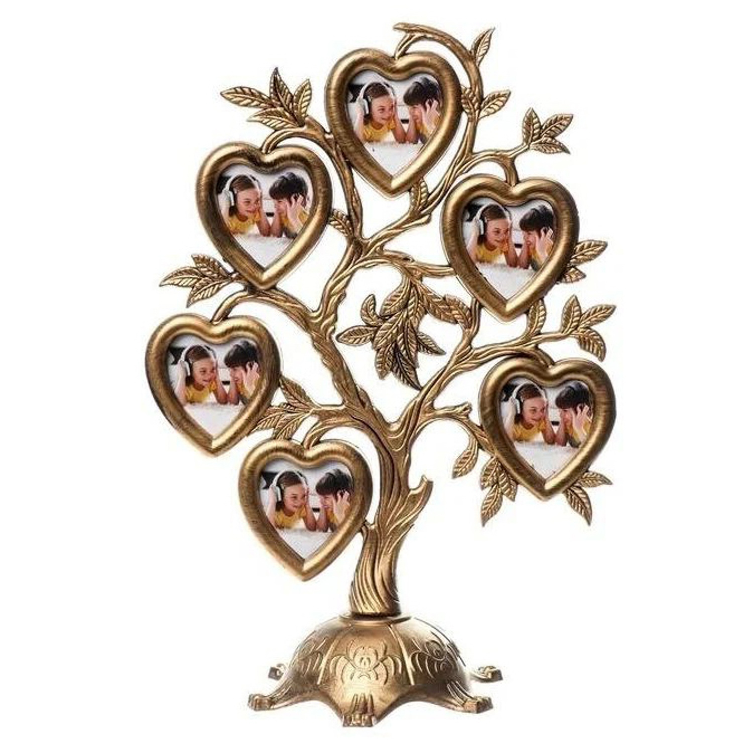 Фоторамка пластик на 6 фото 4,5х3 см "Дерево с сердцами" тёмное серебро 26,5х19,5х11 см 3930140