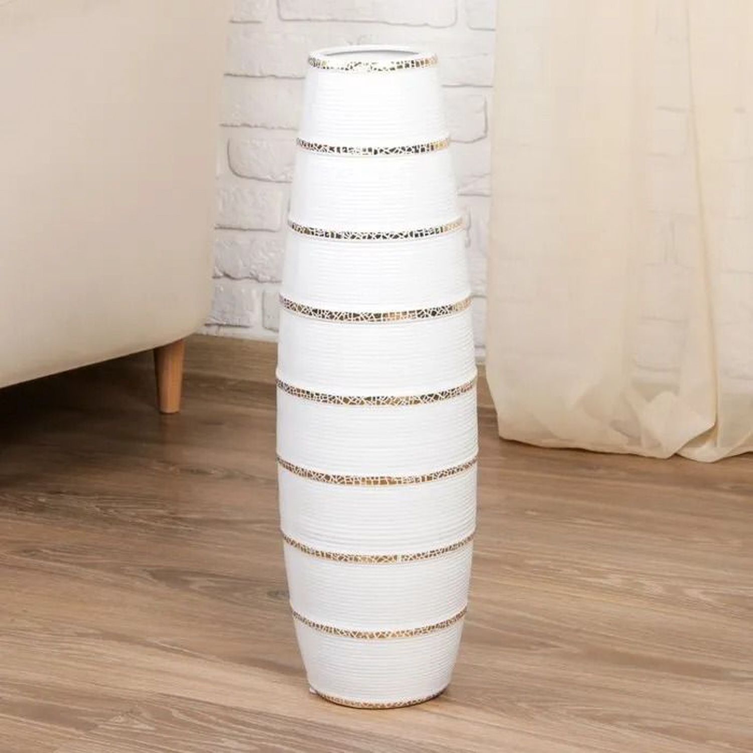Ваза керамика напольная "Геометрия люкс" полосы, 60 см, белый 4291182