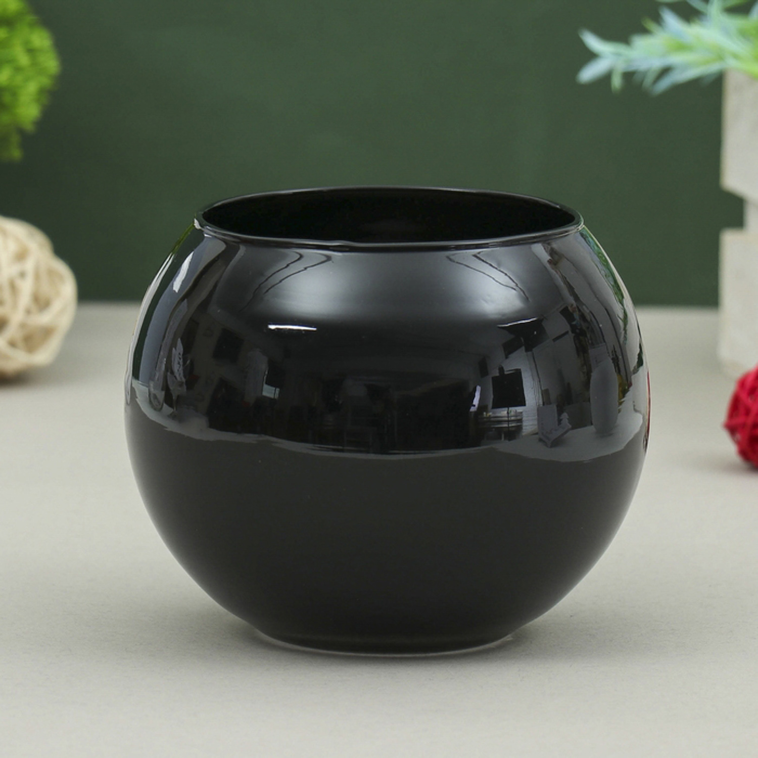 Ваза "Пять вечеров" чёрная глянцевая, шаровая 12х12х10 см, 1л 1169874