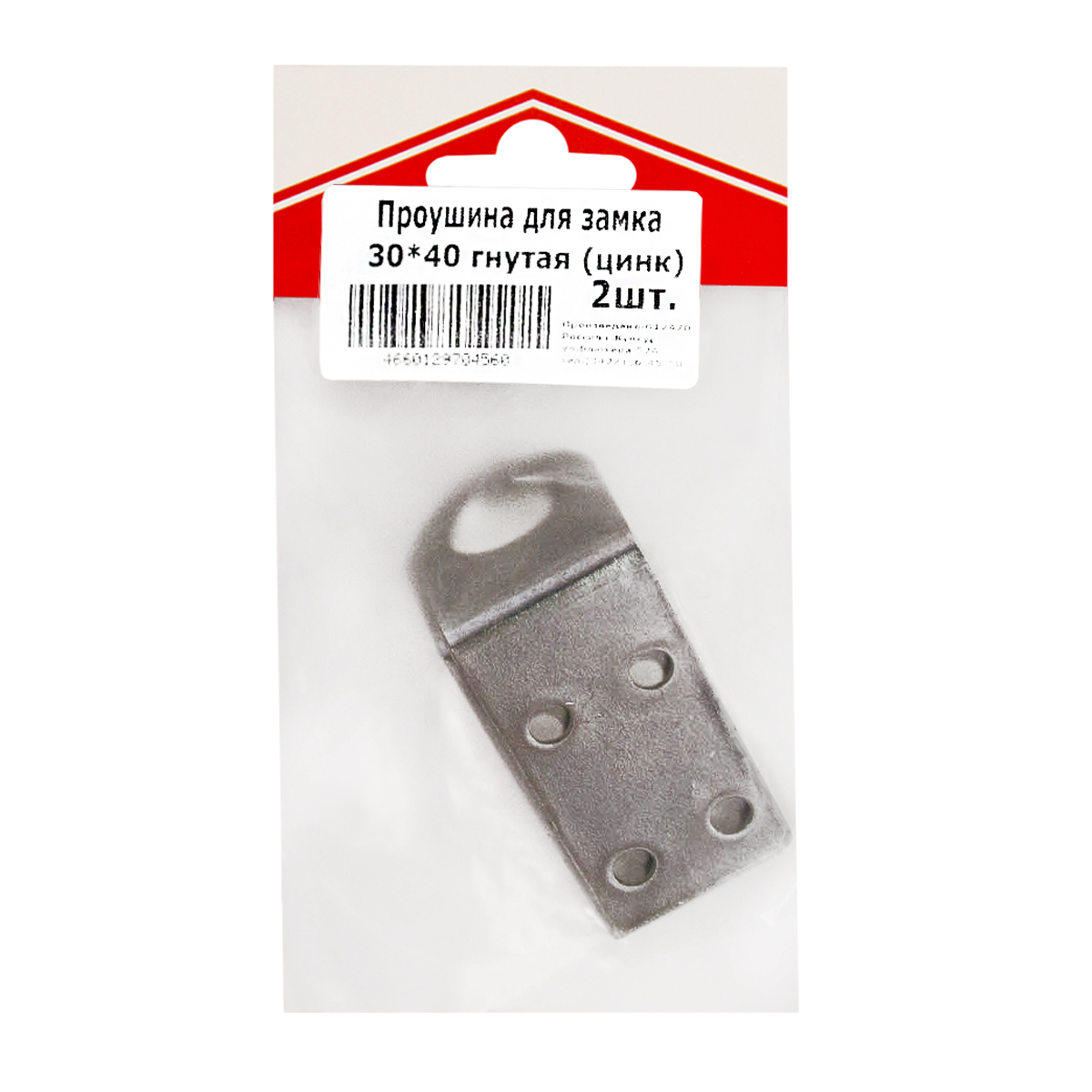 Проушина для замка гнутая 30*40 цинк б/шур (комплект 2шт.) ДомоСтрой *10/100