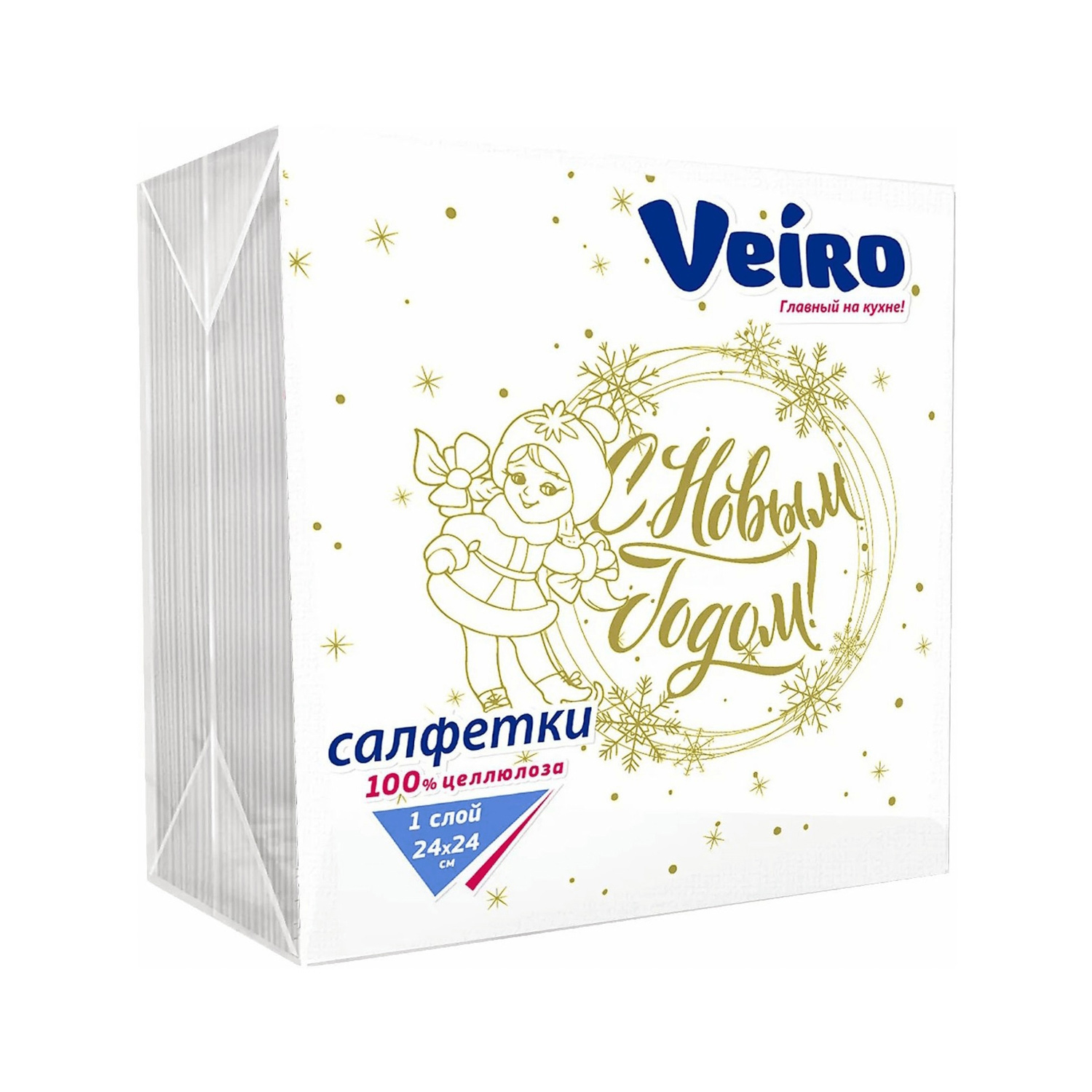 Салфетки бумажные 50шт НОВЫЙ ГОД 24*24 см Veiro Снегурочка1 сл *90