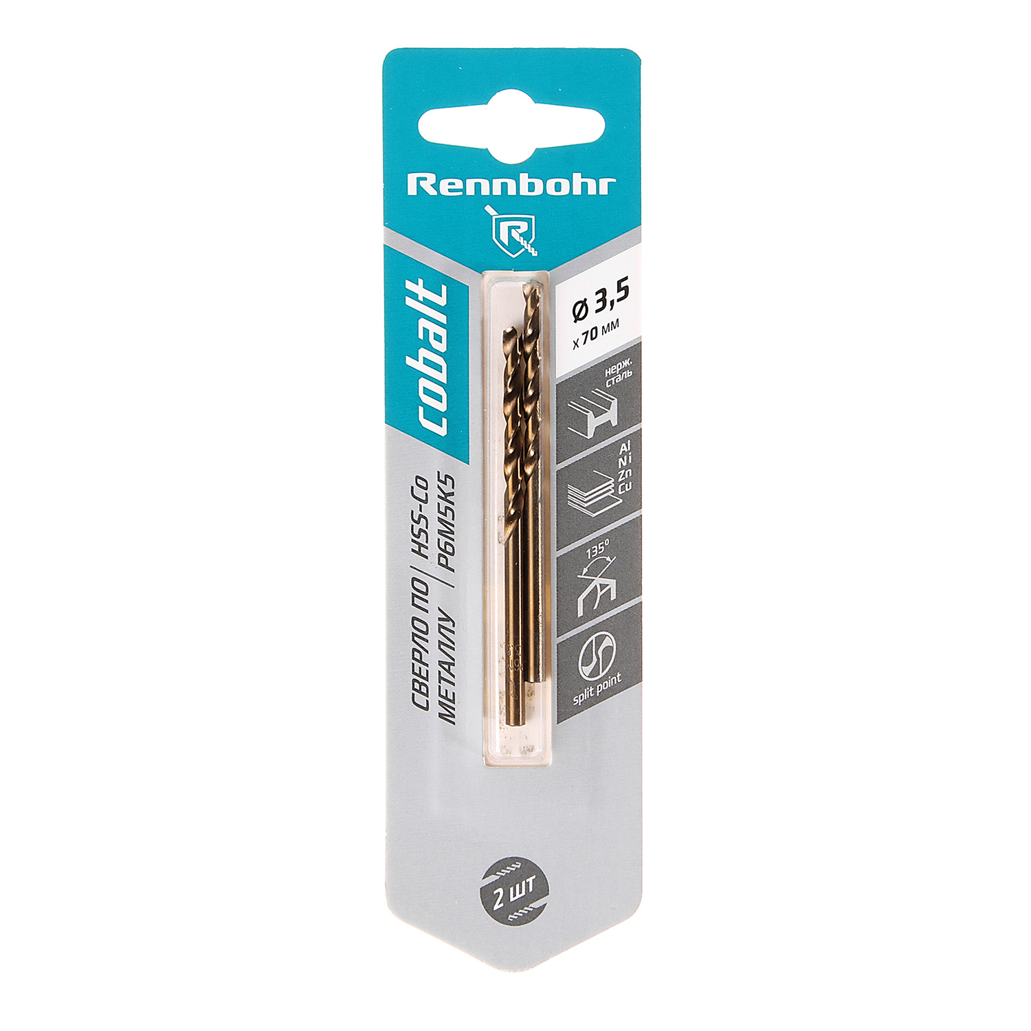 Сверло по металлу 3,50*70/39мм HSS-Co P6M5К5 (2шт) блистер арт.668035 COBALT RENNBOHR *10/40/640