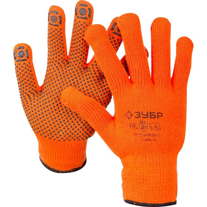 Перчатки ХБ с ПВХ 10кл (2 нити) 70гр сигнально-оранжевый утепленные (11464-XL) АНГАРА *5/100