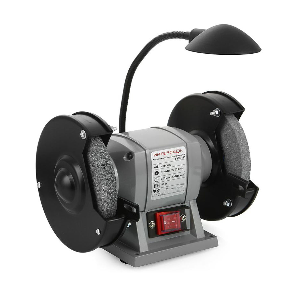 Машина настольная шлифовальная ИНТЕРСКОЛ Т-150/150 предназначена для заточки режущего инструмента, используемого для работы на металлорежущих станках (резцы, сверла), для заточки лезвий ножей, топоров, ножниц, также применяется для снятия фасок и заусенцев, приданию деталям определенной формы за счет вращения абразивного круга (камня), в качестве привода используется асинхронный двигатель.