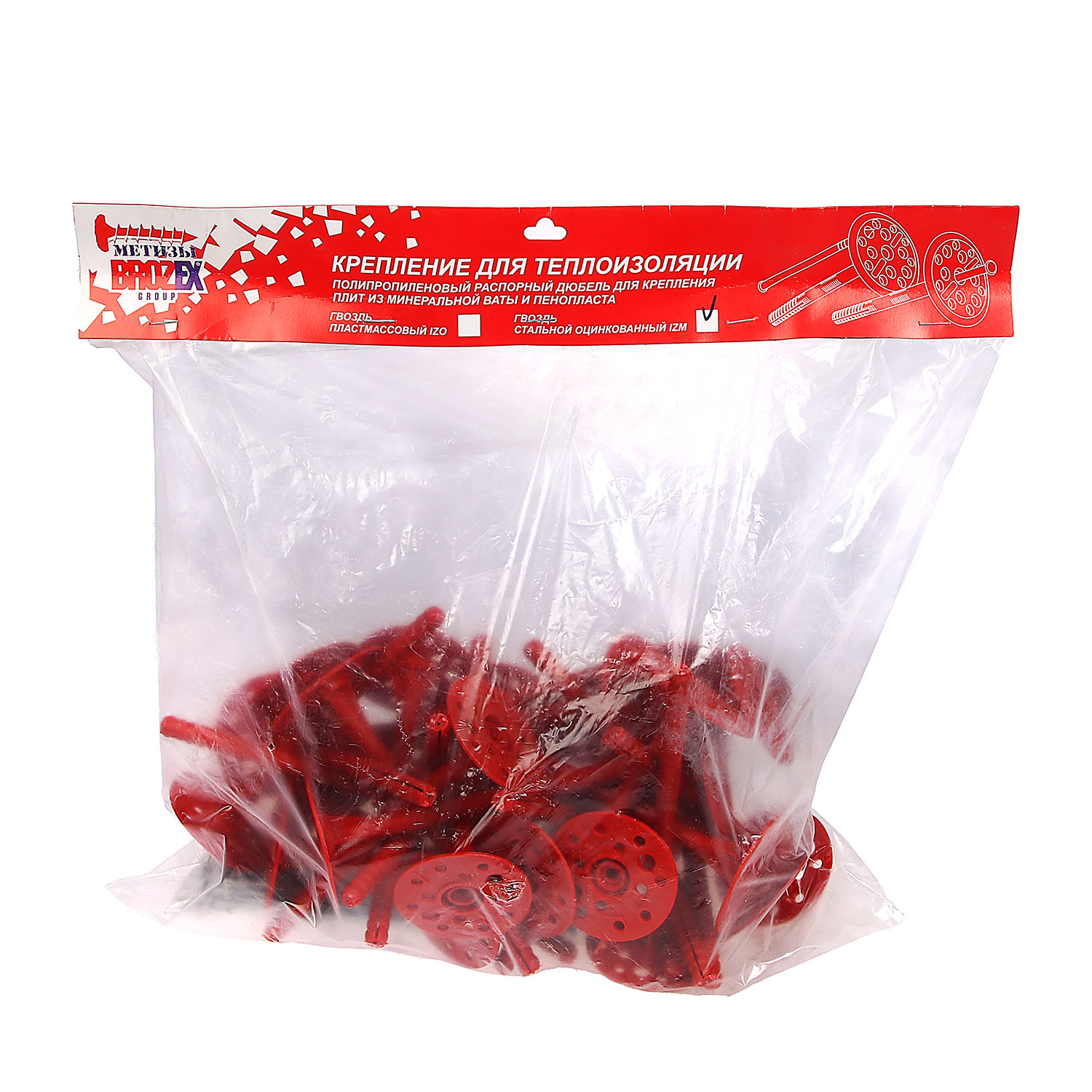 Дюбель 10х160 мм для теплоизоляции BROZEX, метал. гвоздь IZM, 30 шт.