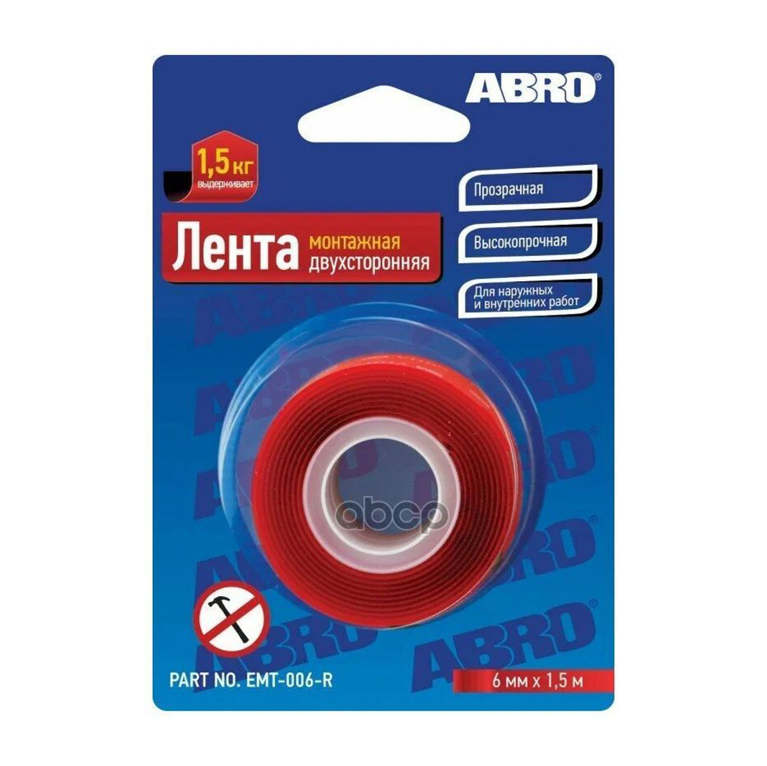 Лента клейкая двусторонняя Профессиональная Прозрачная 6мм х1,51м EMT-006-R "ABRO" *1/144