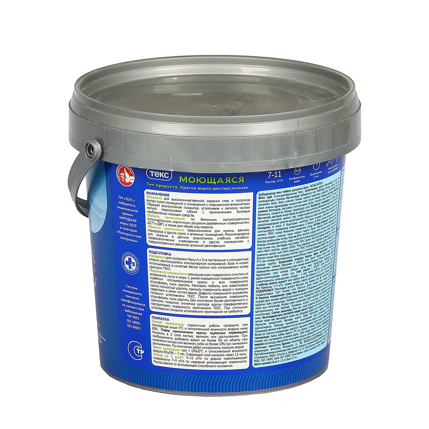 Краска акриловая для стен и потолков 0,9 л ТЕКС "Профи" моющая База А *1/44
