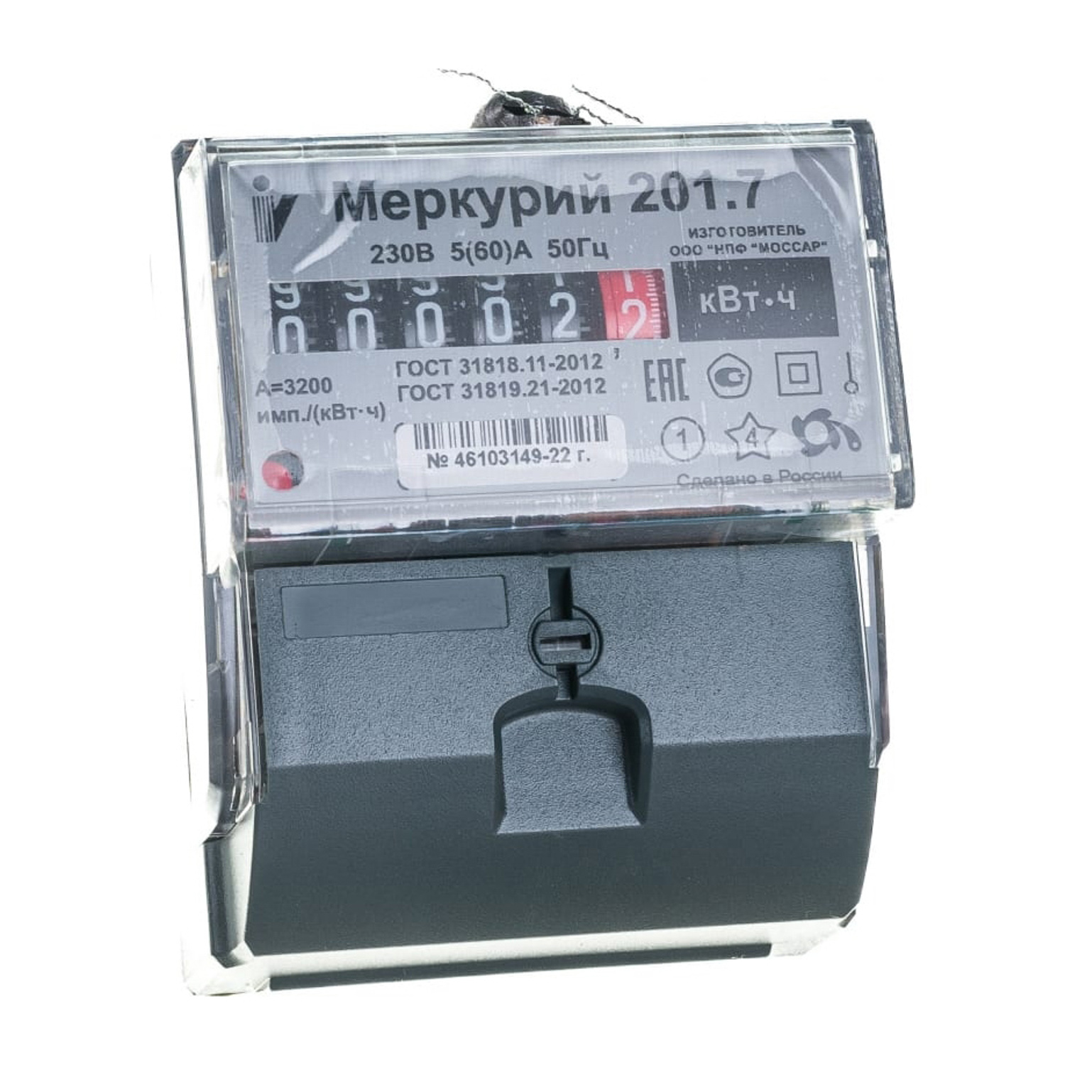 Счетчик "Меркурий" 201.7 1ф 5-60 А класс точн. 1.0 1 тариф на DIN-рейку. *1/48