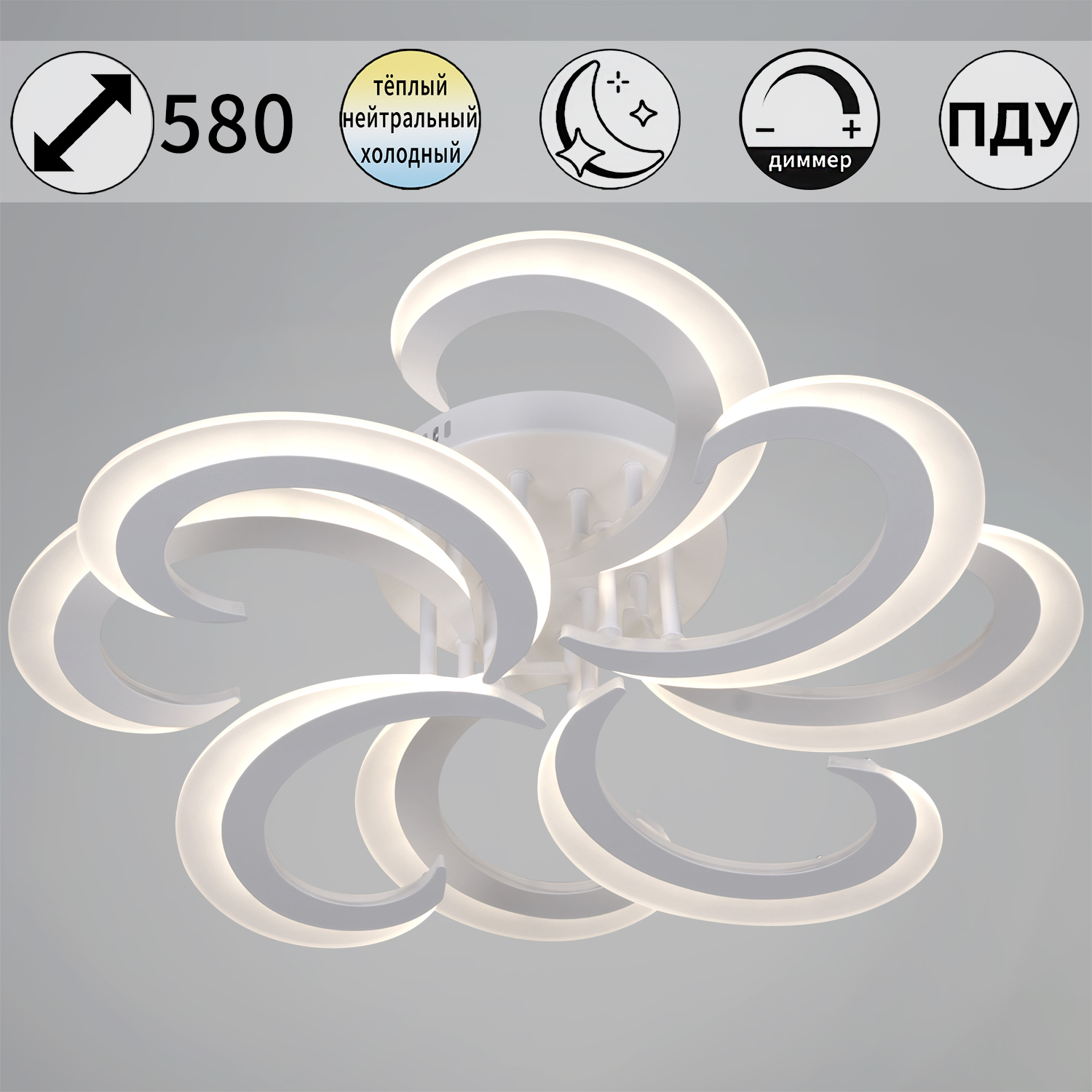 Светильник потолочный светодиодный 05090-0.3-4+4 WH LED 3000-6500К 112W ПДУ ПДУ+диммер S=20м2  *1