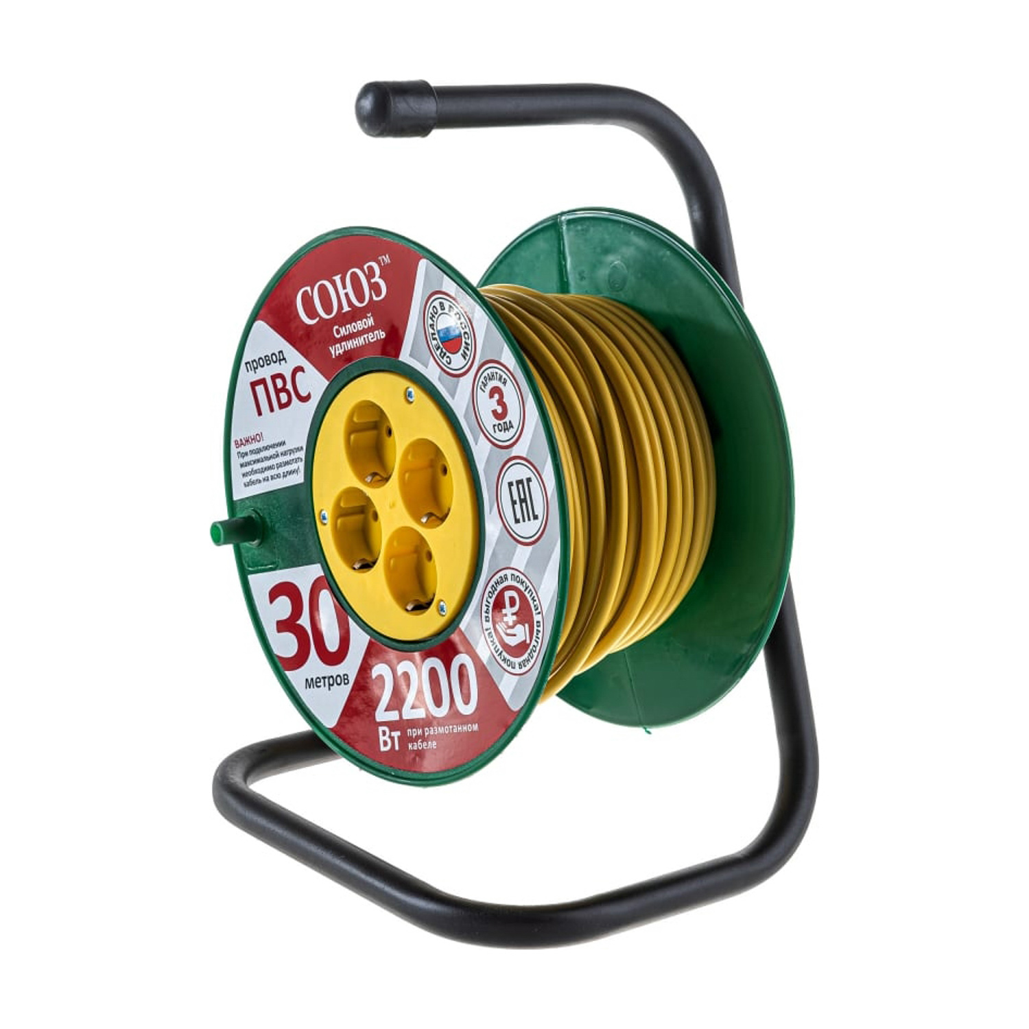 Удлинитель 4 розетки 30м с/з КАТУШКА ПВС 3*0,75 10А IP20 2.2кВт Союз 481S-3403 *1