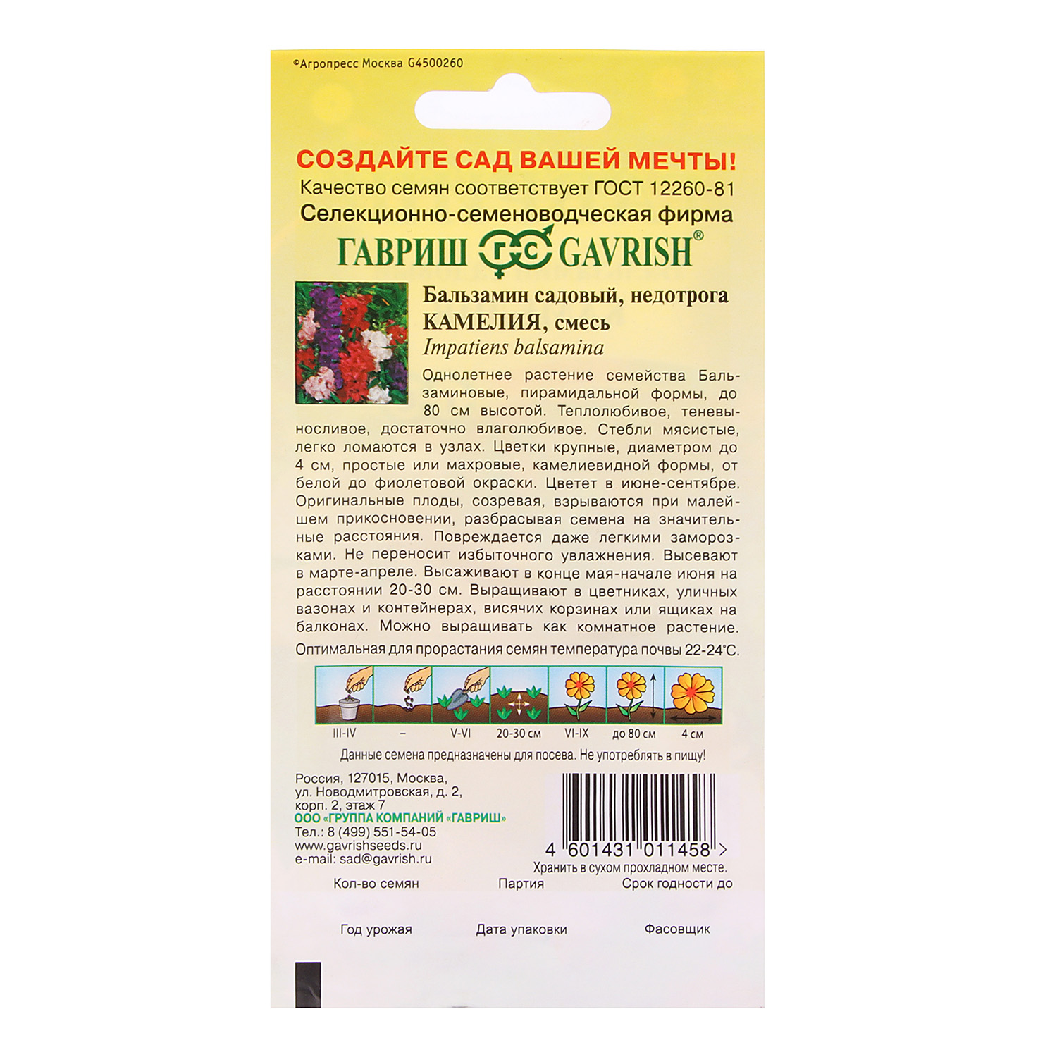 Семена Бальзамин Камелия смесь 0,1гр Гавриш *10/200