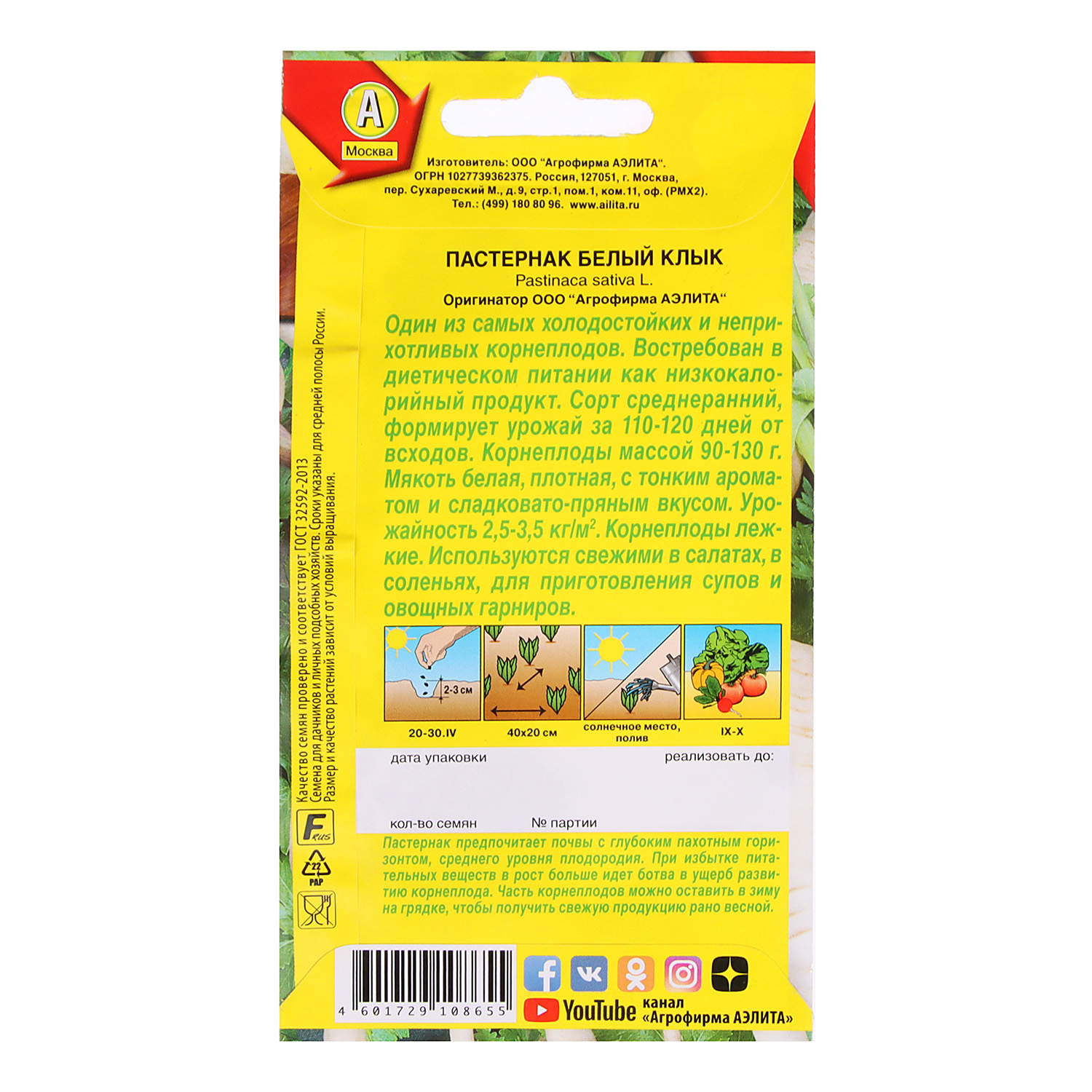 Семена Пастернак Белый клык 1гр Аэлита цв автор *10/500