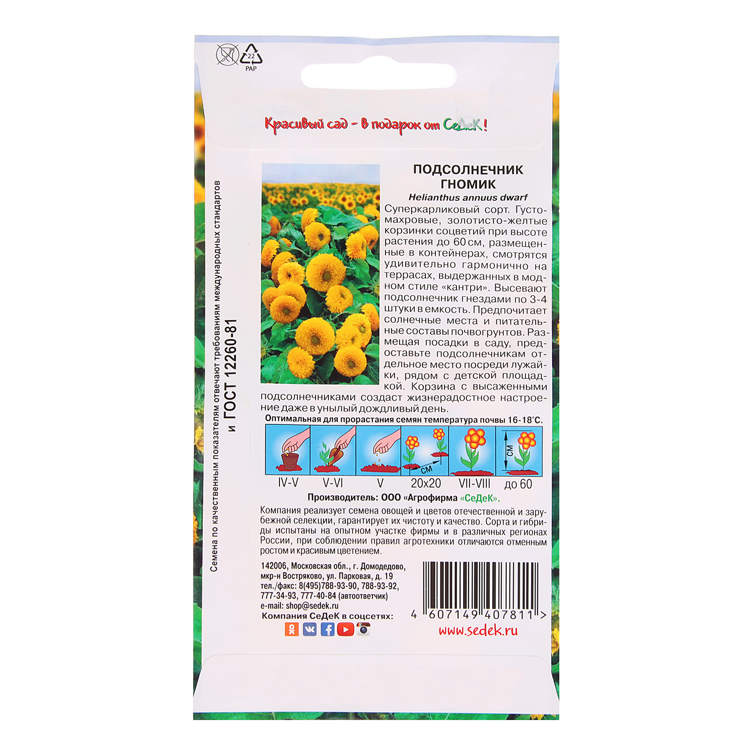 Семена Подсолнечник Гномик 0,4гр СеДеК *10/200