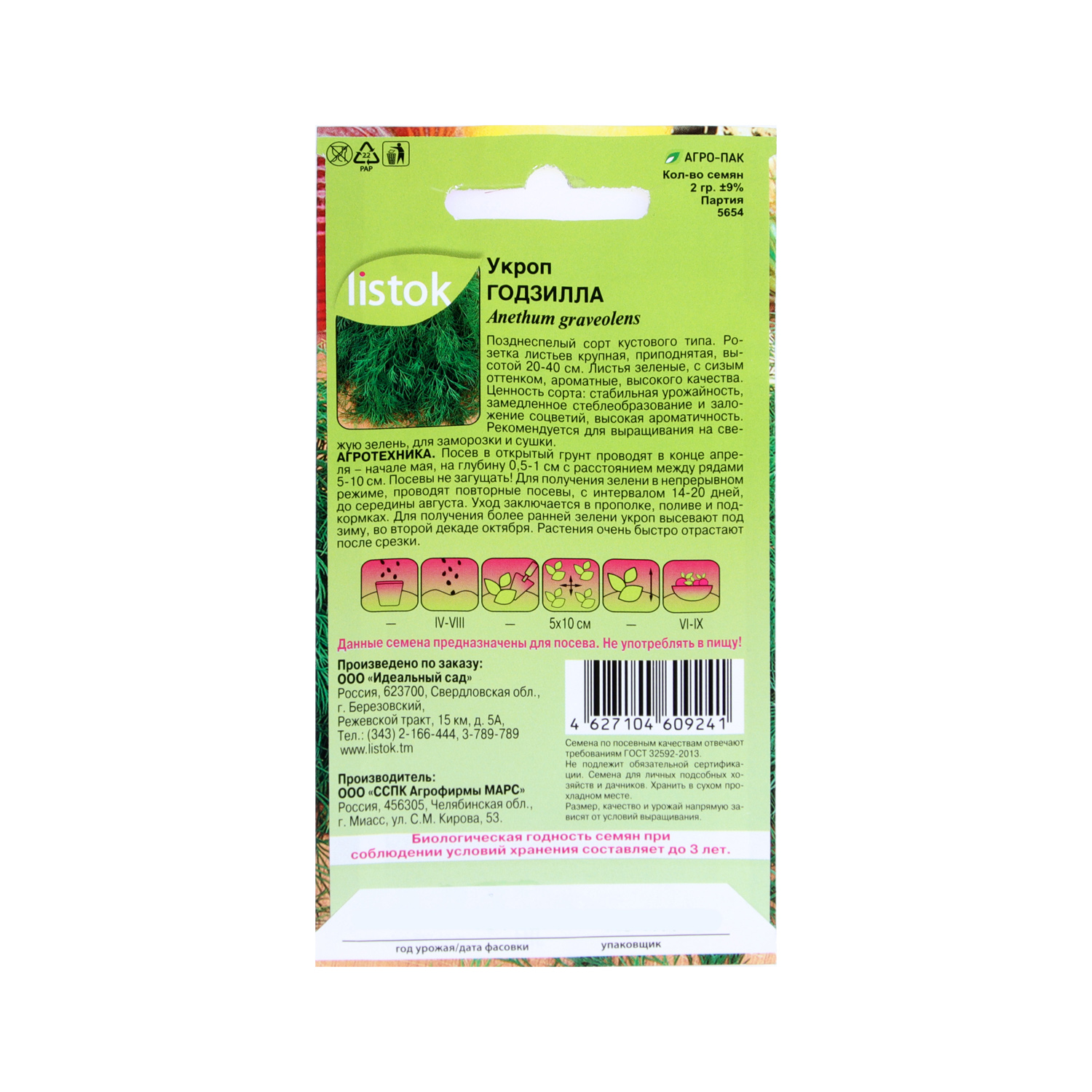 Семена Укроп Годзилла 2гр LISTOK *10/500