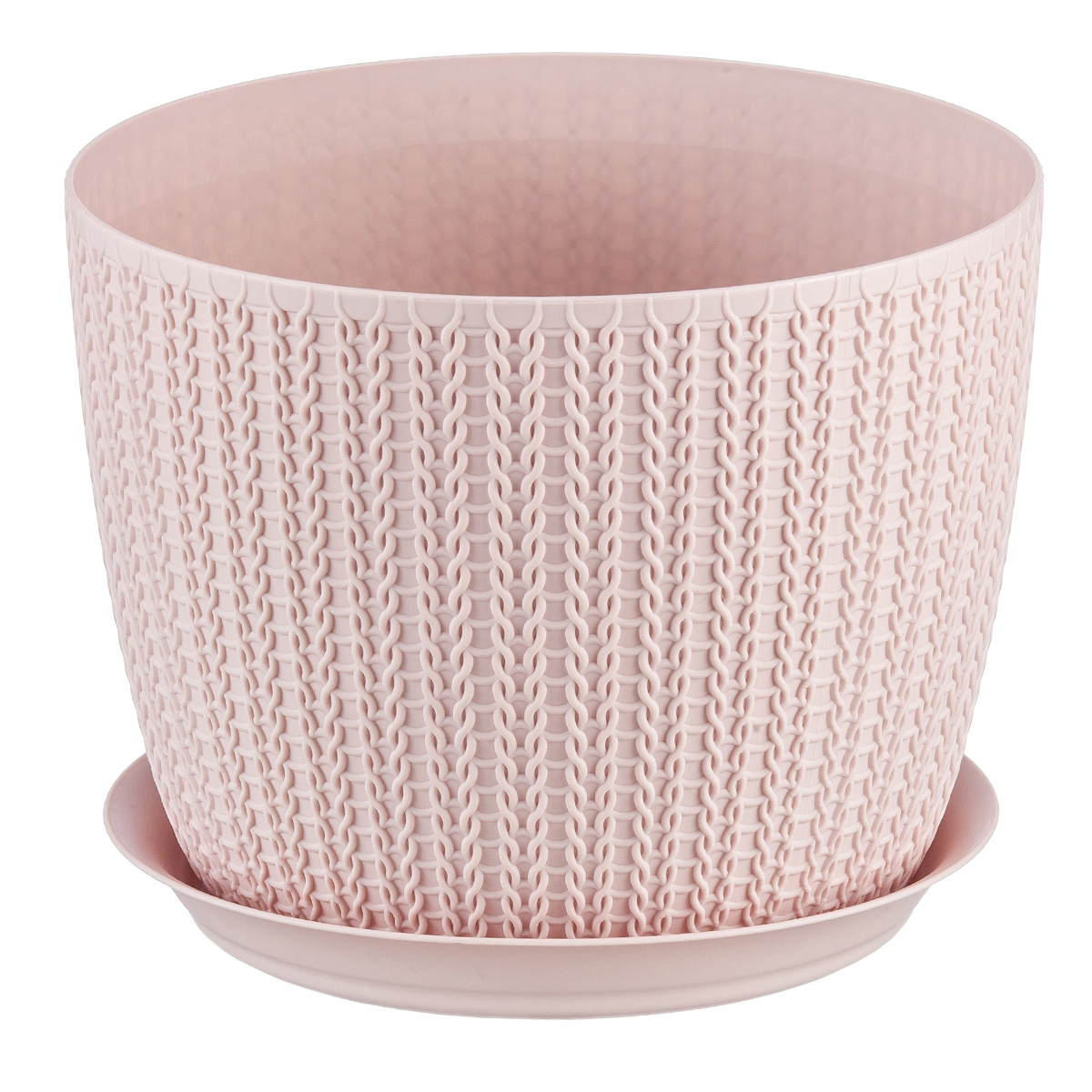 Оригинальная текстура, которая имитирует вязание спицами – изюминка этого изделия. Современное кашпо, украшенное нежной вязкой, подчеркивает красоту цветов и добавляет уюта вашему интерьеру. Кашпо из прочного пластика не боится прямых солнечных лучей и перепадов температур. Легкие и прочные, комплектуются поддонами.