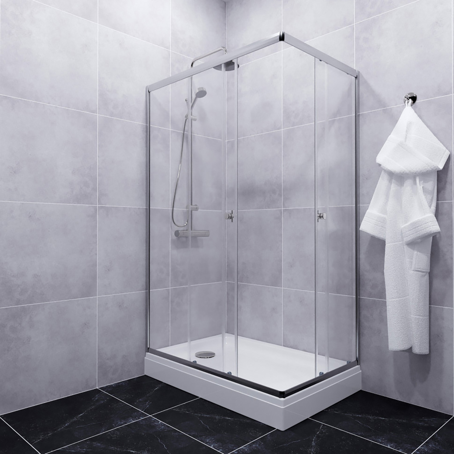 Душевой уголок 120*80*202 Вента-Хром поддон прямоугольный, низкий, Белый, стекло прозрачное (2места+сифон D90мм)