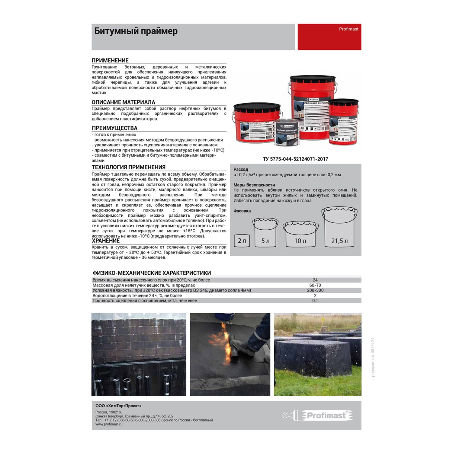 Праймер битумный Profimast совместим с большинством битумных и битумно-полимерных материалов, обладает малым временем высыхания, высокой проникающей способностью, эффективно пропитывает и связывает пыльные загрязнения. Не содержит толуола и других токсичных растворителей.