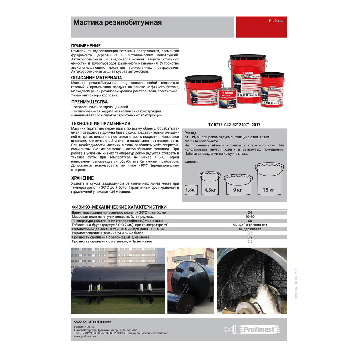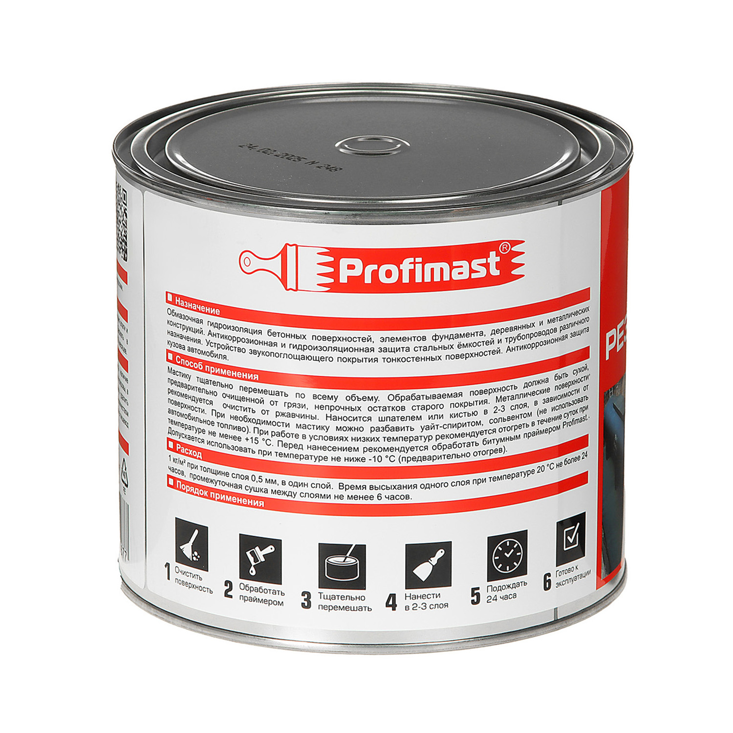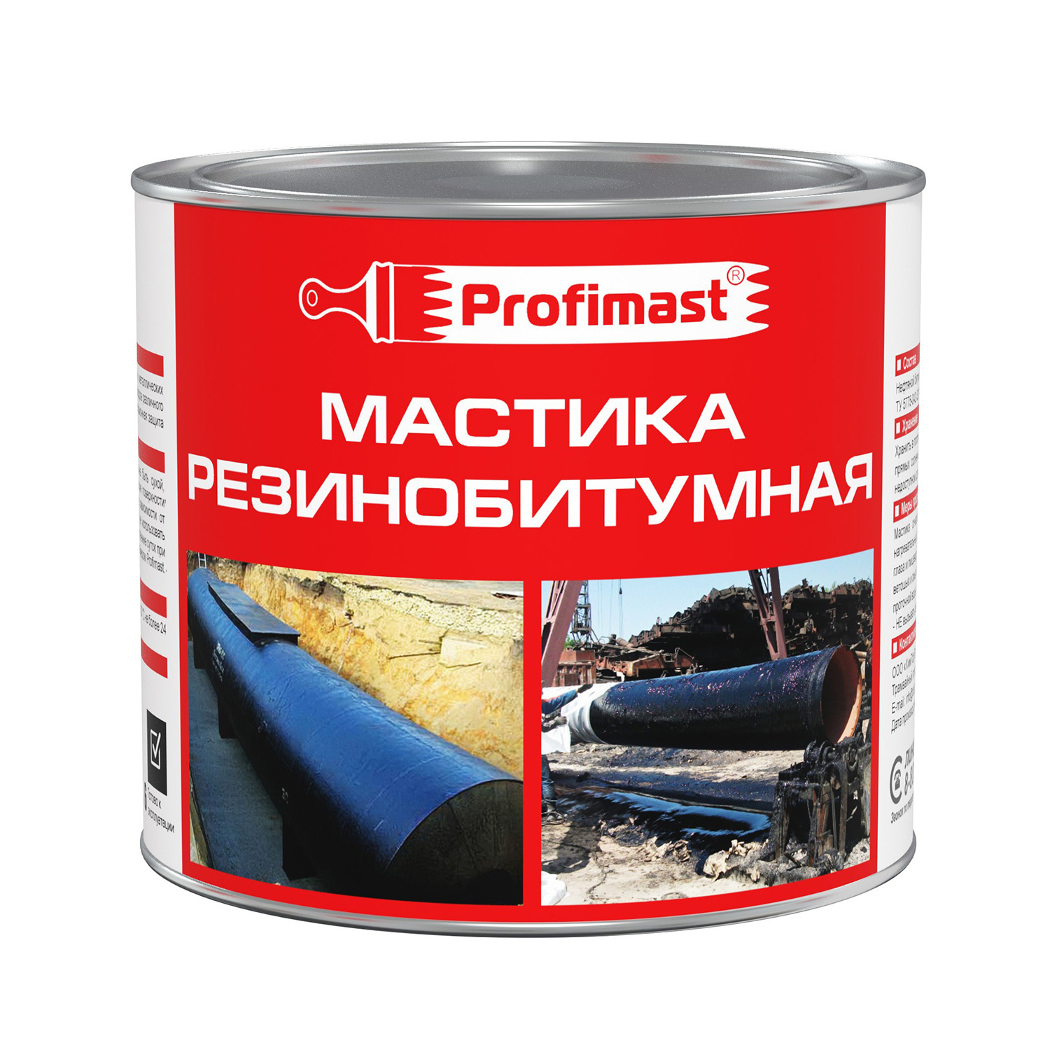 Мастика резинобитумная Profimast совместима с большинством битумных и битумно-полимерных материалов, обладает густой консистенцией, не растекается в горизонтальных швах и трещинах. Содержит гербицид, препятствующий росту растений, а также распространению мхов и лишайников в кровельном полотне. Не содержит толуола и других токсичных растворителей.