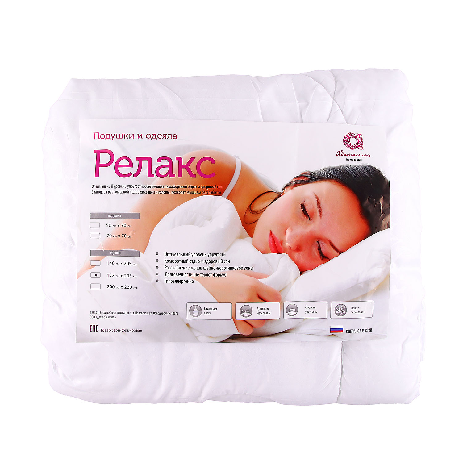 Одеяло Микрофибра 172*205см облегченное, чехол микрофибра, пакет, Релакс Адамас *1/5/10