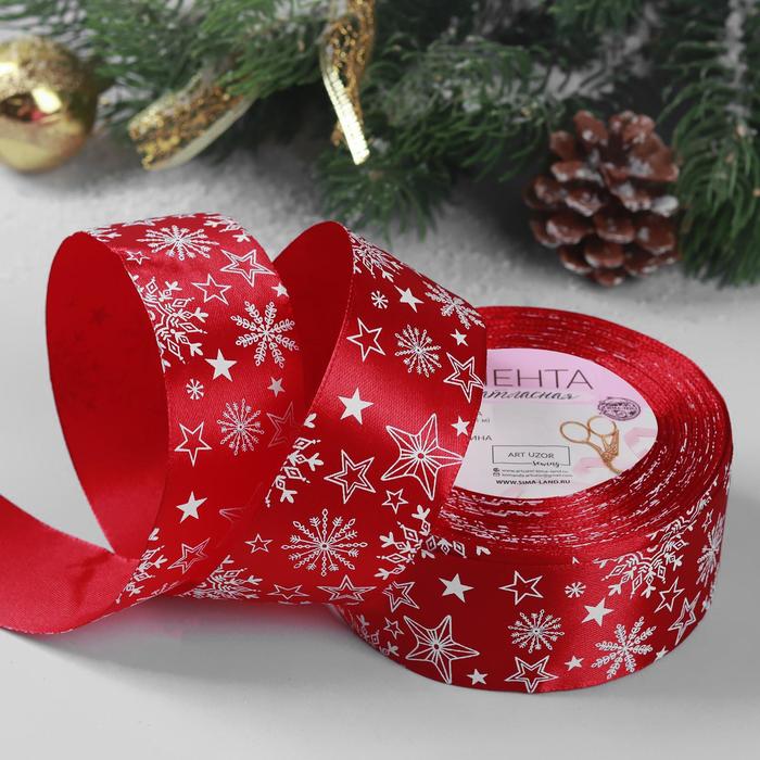 яяяЛента атласная 40мм*25±1ярд снежинки №33 красный/белый АУ 4937929