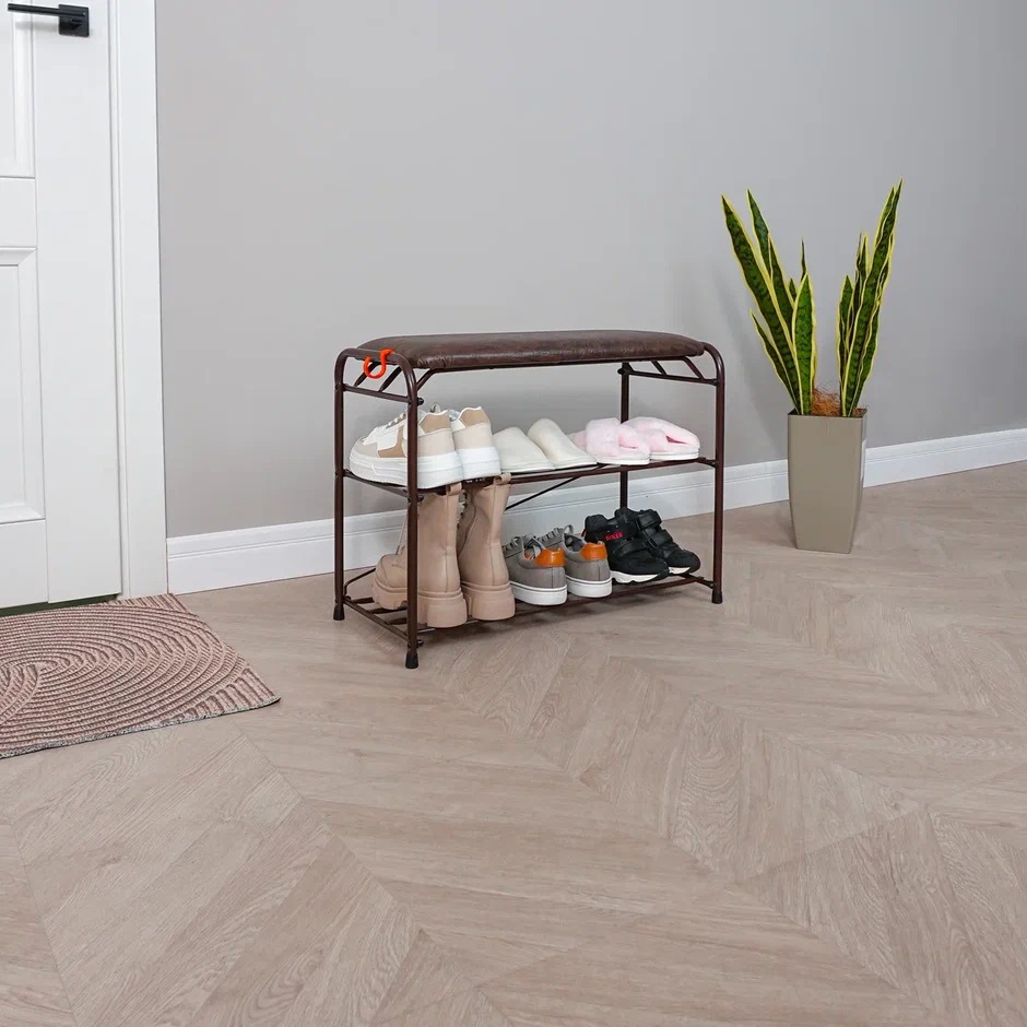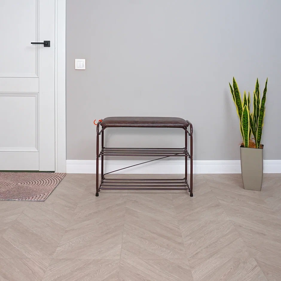 Этажерка "обувница" металл. "Альфа 23с" 2пол+мягк.Сид. ш.0,65м, в.0,48м, гл.0,3м Коричн.ПДОА23СКОР*1