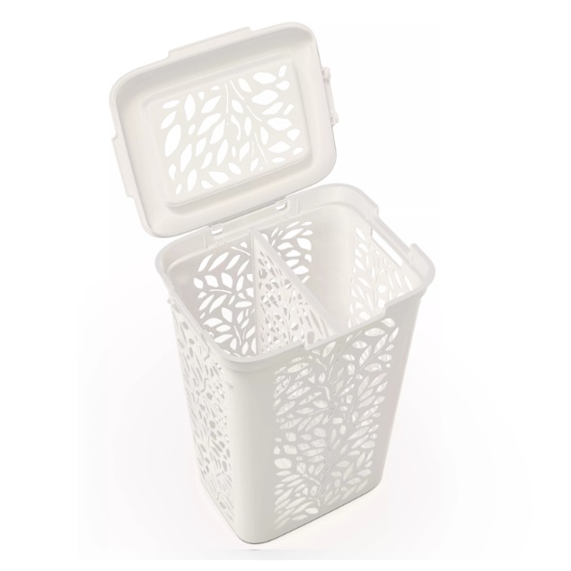 Корзина для белья пластм. 60л "Leaves" с разделителем 440x340x635мм Молочный 48917  ("Пли-быт") *1/4