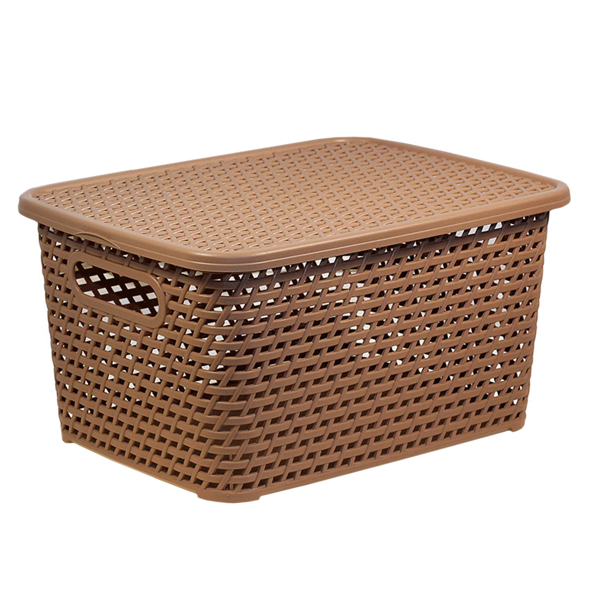 Корзина для хранения пластм. "Ротанг" 280х185х126мм с Крышкой, Бежевый М2372 ("М-Пластика")*1/12