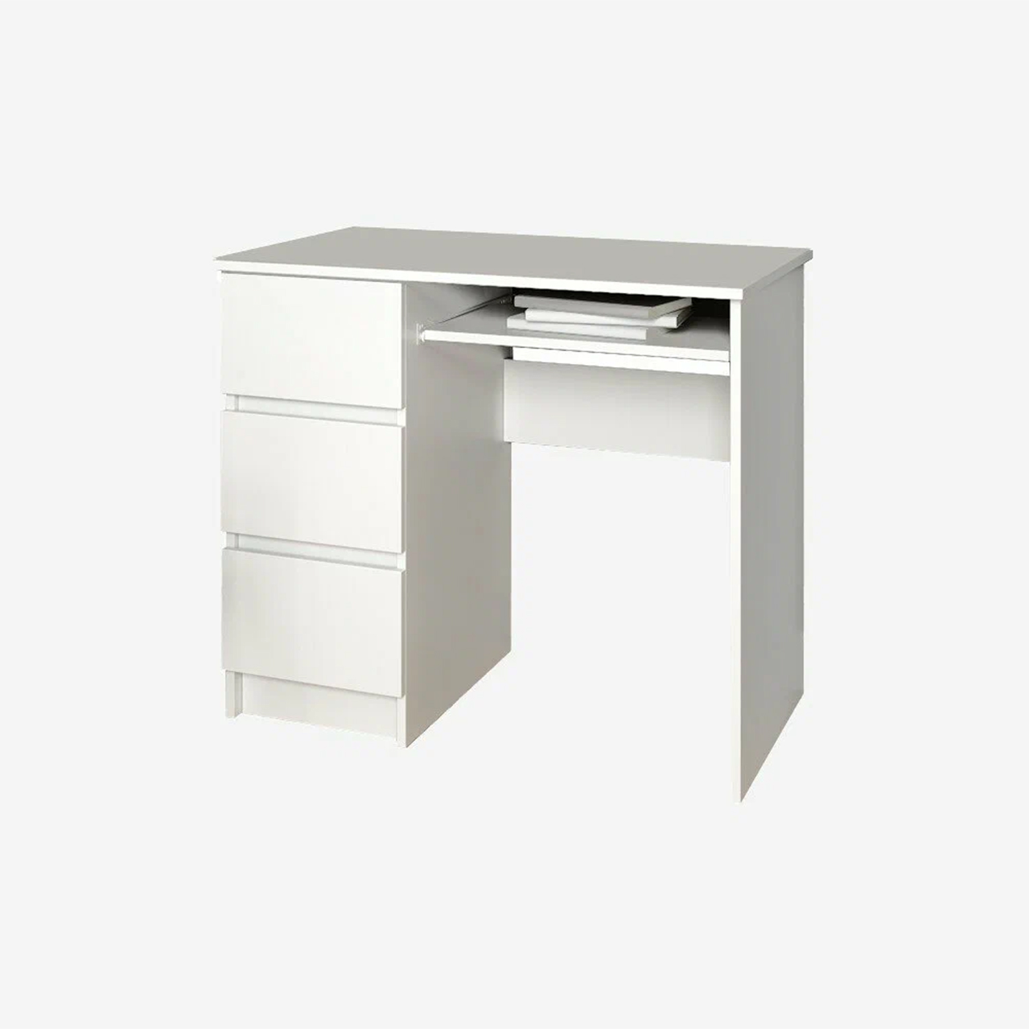 яяяСтол МОРИ МС-6 с 3ми ящиками,ЛЕВЫЙ (900*504*770 мм), ЛДСП белый (МП/З)*1