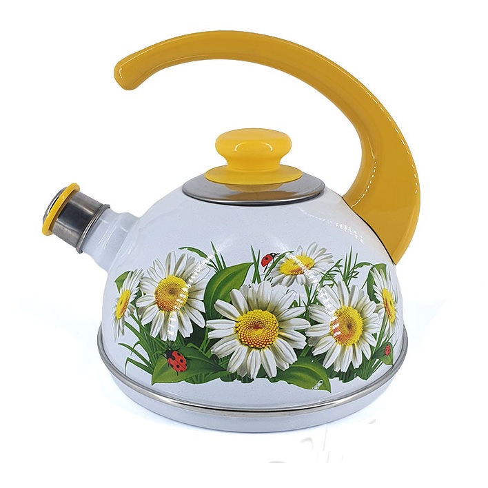 Чайник эмалированный со свистком 2,5л декор "Марианна" Белый Т04/25/03/32/Н16 *1/4