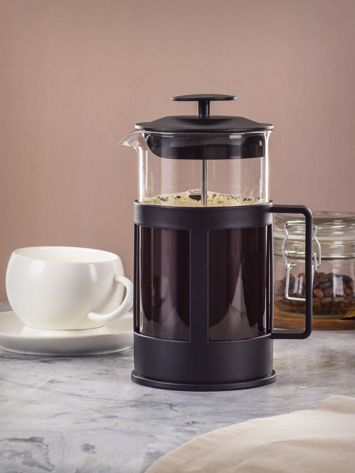 Чайник заварочный "френч-пресс" жаропрочное стекло "Basic" 1000мл ATF101 "Attribute" *1/4/16
