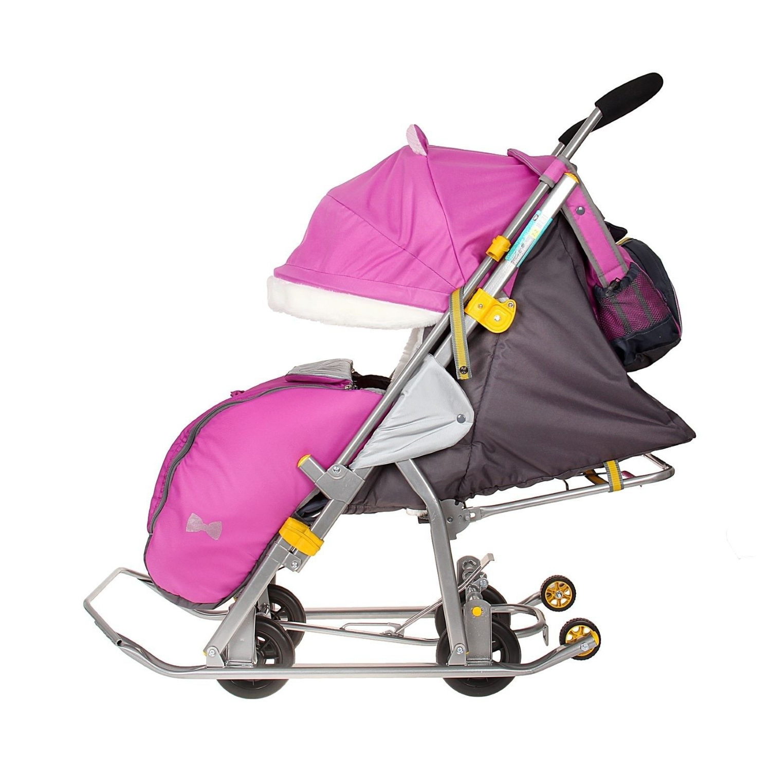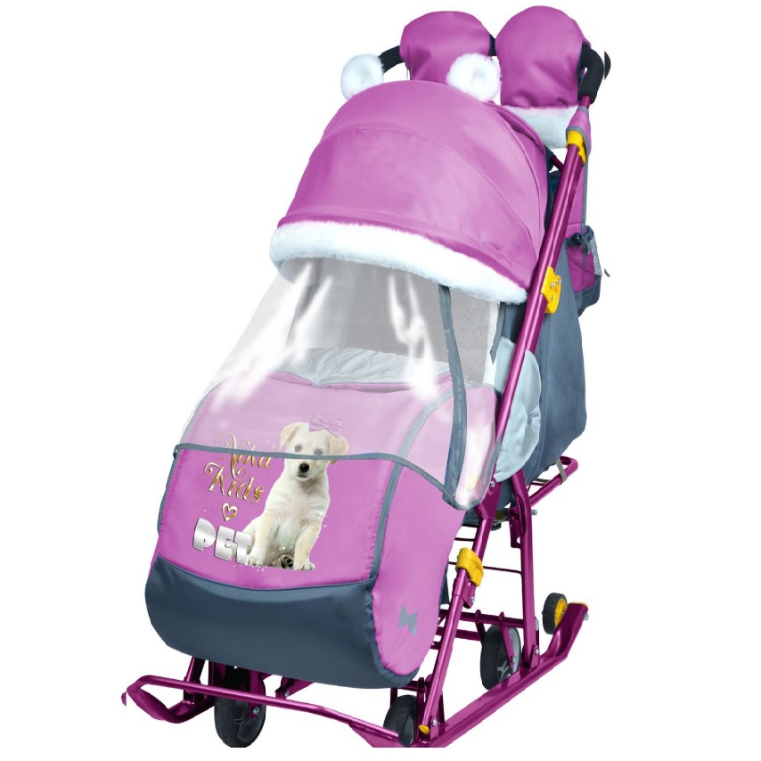 Санки-коляска детские "Ника Детям 7-2" орхидея (сиреневый) рис."щенок" плоск.полозья/колеса НД7-2 *1