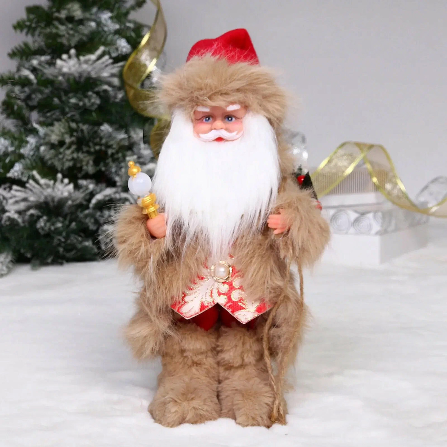 Дед Мороз - Лесовичок "Лесной гость" 30 см, Красный/бежевый