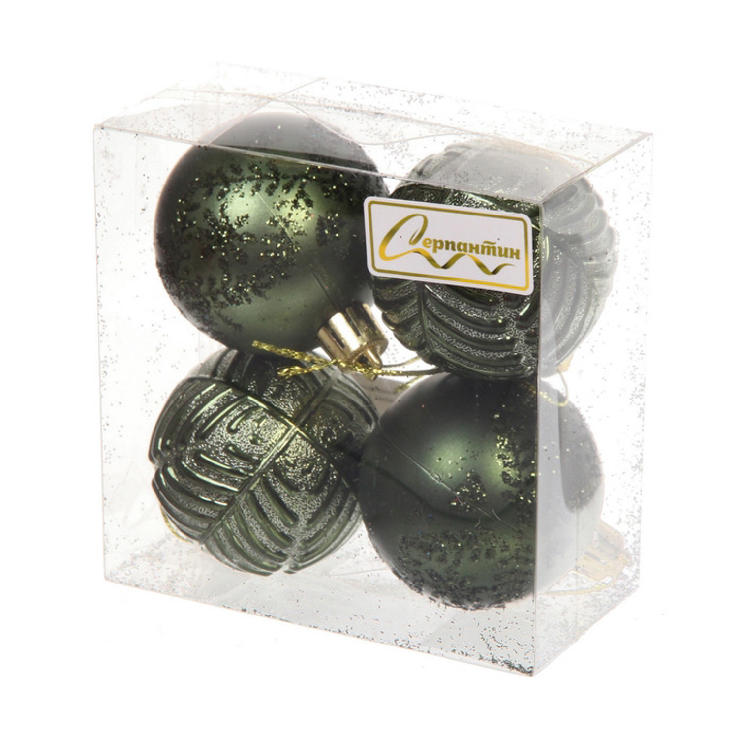 Новогодние шары 5 см (набор 4 шт) "Лесная тайна", изумруд