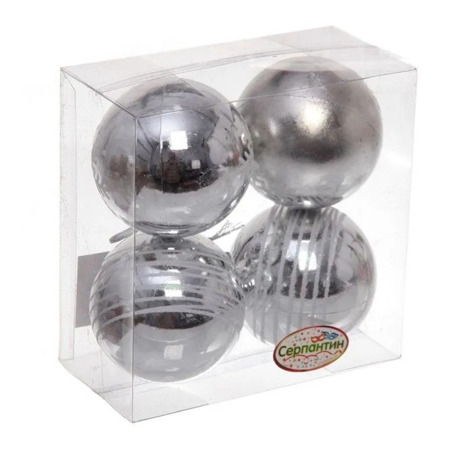Новогодние шары 6 см (набор 4 шт) "Снежные нити", серебро/белый