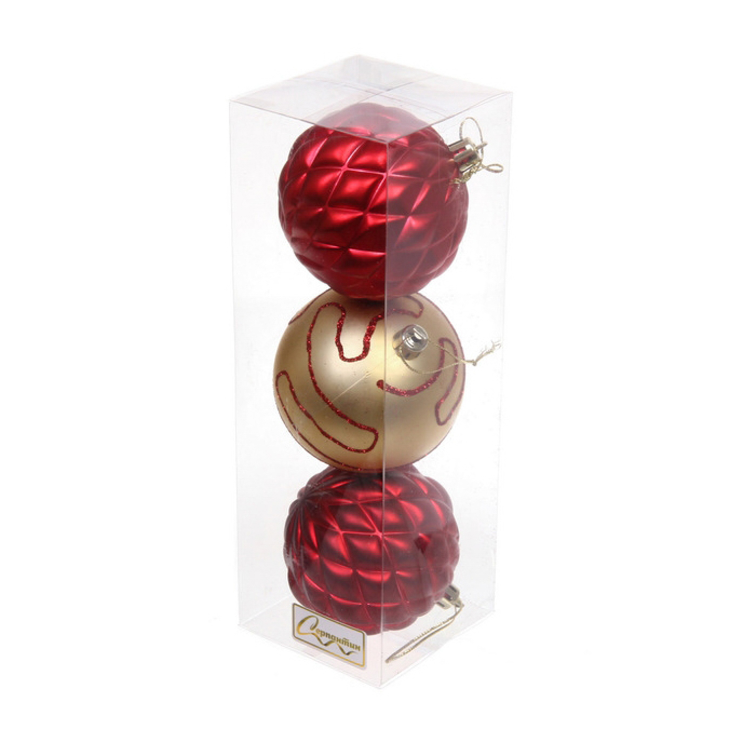 Новогодние шары 7см (набор 3шт) "Сказочная мечта", золото/красный