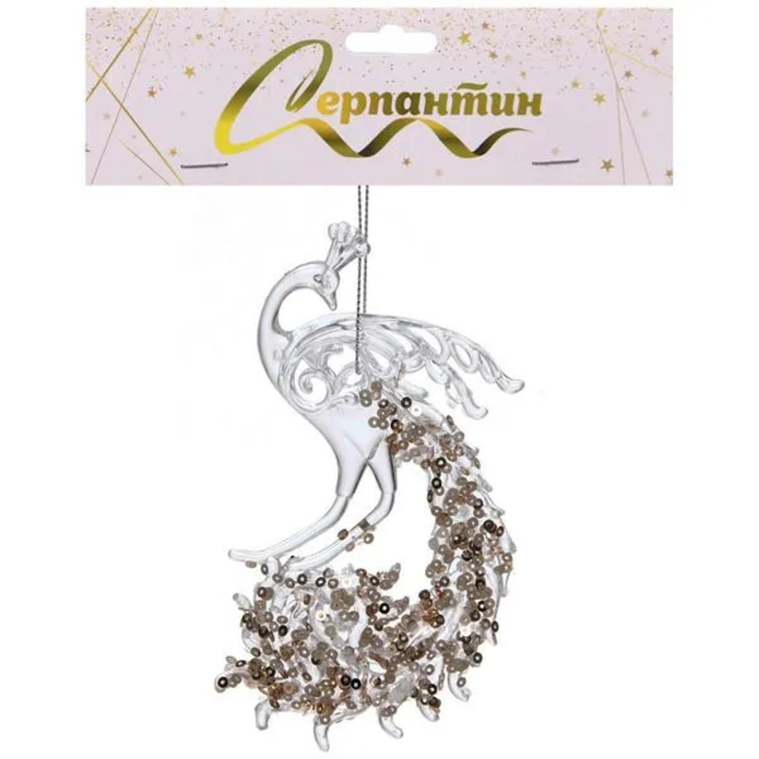 Подвеска "Павлиний хвост" 15*8 см, Белый/Золотой блеск