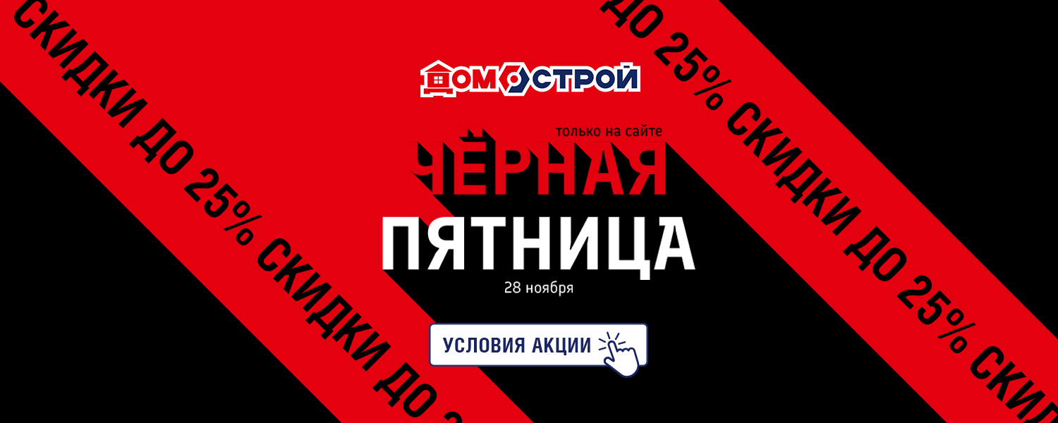Чёрная пятница 28 ноября в сети ДомоСтрой! Только 1 день 28 ноября на сайте — скидки до 25%. Это отличная возможность приобрести напольные покрытия, инструменты, обои, двери и товары для дома по привлекательным ценам! Оформляйте заказы 28 ноября и забирайте в течение 3 дней после.