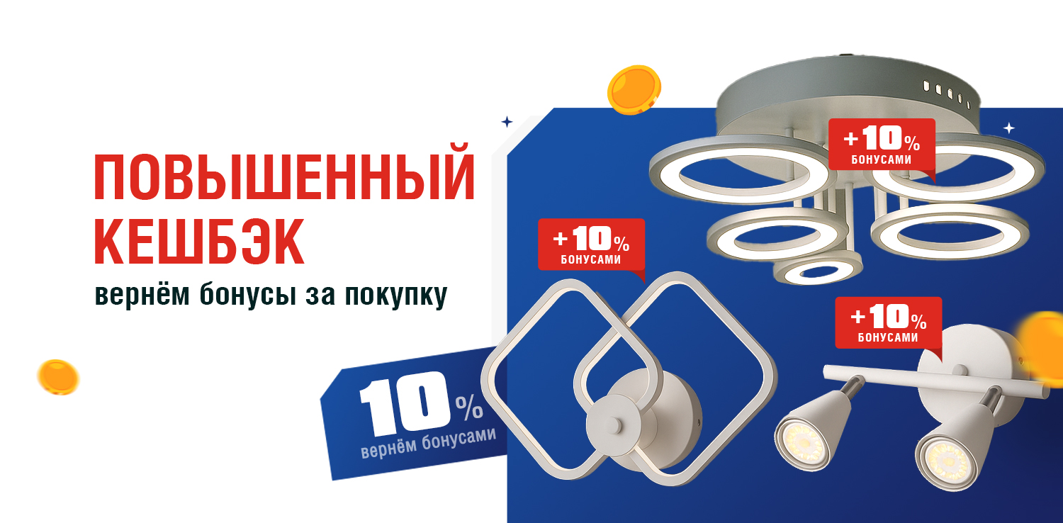 ▪ за покупку светильника, настольной лампы — вернём +10% бонусами.